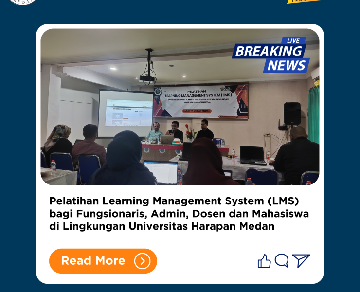 Universitas Harapan (UnHar) Medan menyelenggarakan Pelatihan Learning Management System (LMS) bagi Fungsionaris, Admin, Dosen dan Mahasiswa dilingkungan UnHar Medan pada tanggal Sabtu, 20 Juli 2024