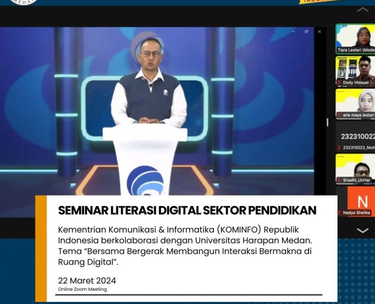 Alhamdulillah telah terlaksana Seminar Literasi Digital Sektor Pendidikan Kerjasama Kementrian Informatika & Komunikasi (KOMINFO) Republik Indonesia dengan Universitas Harapan Medan. Tema “Bersama Bergerak Membangun Interaksi