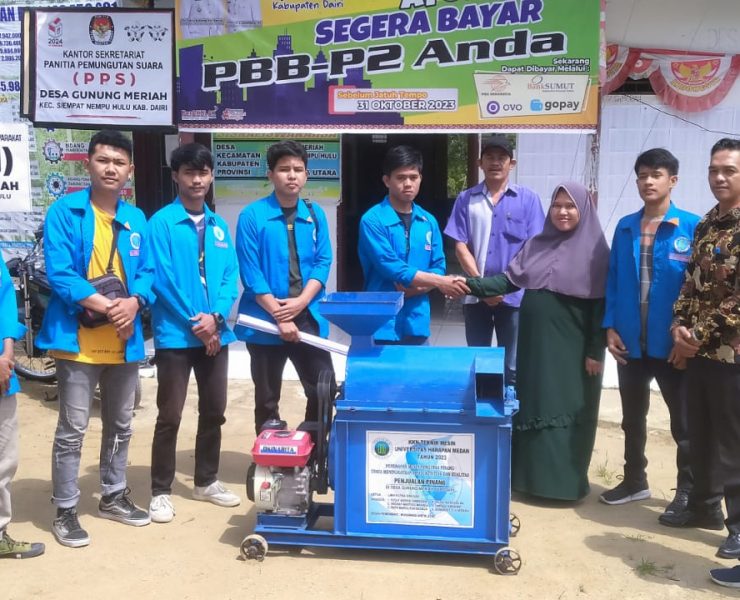 Mahasiswa Prodi Teknik Mesin Serahkan Mesin Pengupas Pinang kepada Masyarakat Desa Gunung Meriah Kecamatan Siempat Nempu Hulu Kabupaten Dairi.