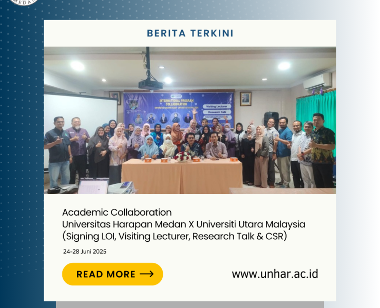 Medan, 25 Juni 2025 — Universitas Harapan Medan (UnHar Medan) menjalin kolaborasi akademik dengan Universiti Utara Malaysia (UUM) dalam sebuah acara resmi yang diselenggarakan di