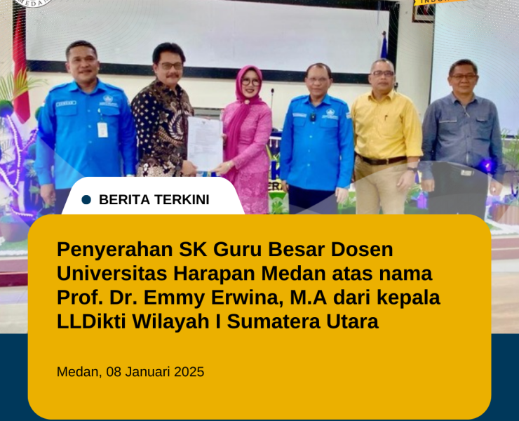 Medan, 08 Januari 2025 – Universitas Harapan (UnHar) Medan merayakan pencapaian gemilang dalam dunia pendidikan dengan penyerahan Surat Keputusan (SK) Guru Besar atas nama Prof.