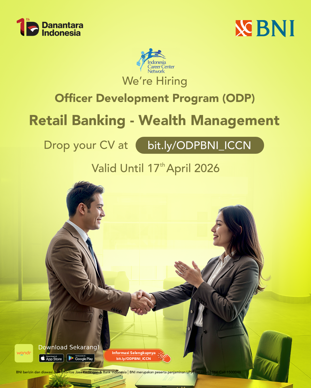 Pusat Karir & Hubungan Alumni (PusaKHA) UnHar Medan berbagi informasi lowongan pekerjaan pada Bank BNI.