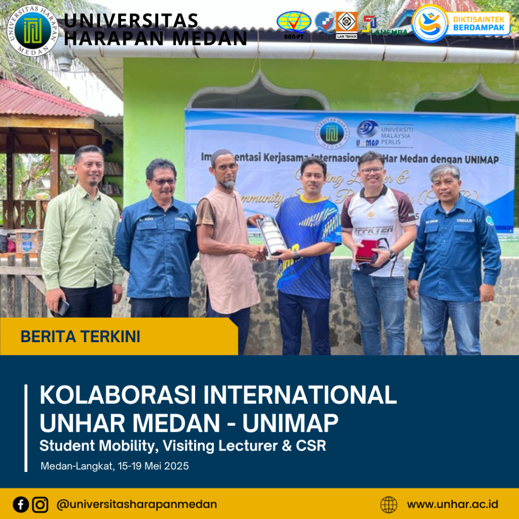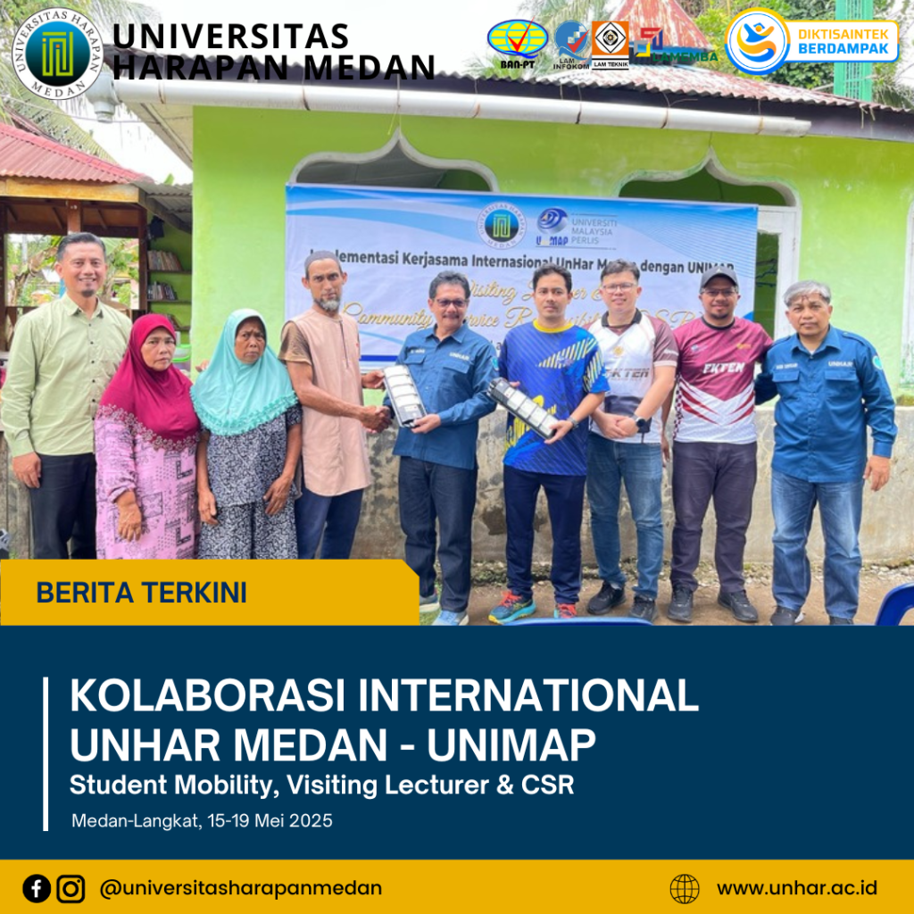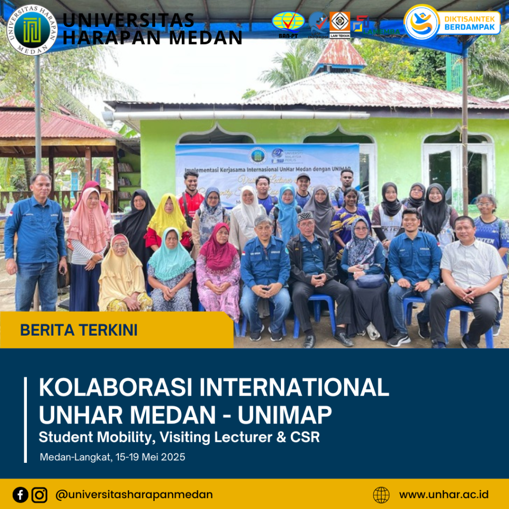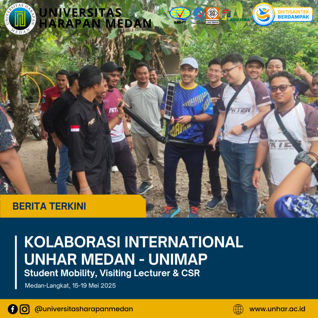 Pada tanggal 15-19 Mei 2025, Universitas Harapan (UnHar) Medan dan University Malaysia Perlis (UniMAP) melakukan kolaborasi internasional yang melibatkan kegiatan Student Mobility dan Visiting Lecturer di Kampus 3 UnHar Medan, Jl. HM Joni No 70, C Medan. Kolaborasi ini merupakan langkah penting dalam memperkuat hubungan pendidikan antarnegara dan memberikan manfaat bagi civitas akademika kedua universitas.