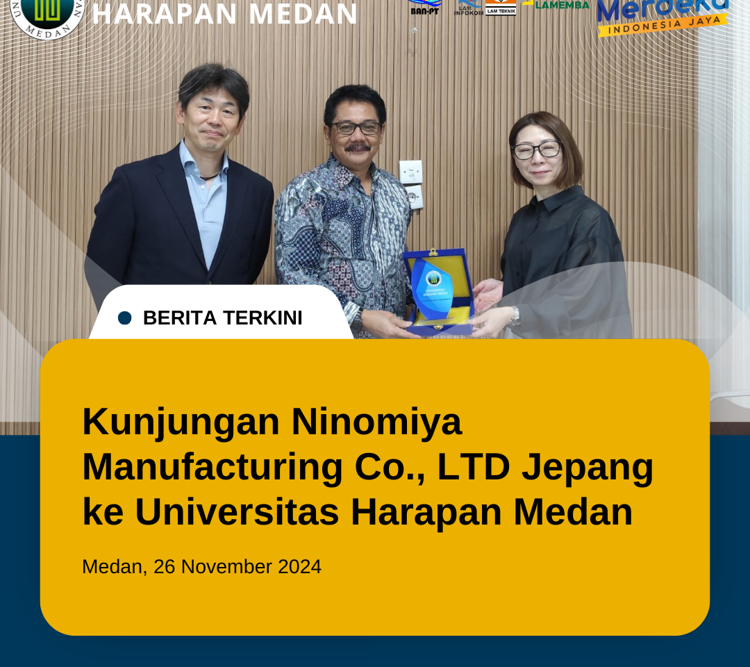 Kunjungan ini merupakan tindak lanjut dari nota kesepahaman (MoU) dan perjanjian kerja sama (MoA) yang telah disepakati sebelumnya mengenai program rekrutmen mahasiswa magang dari UnHar Medan ke Ninomiya Manufacturing Co., LTD yang berlokasi di Chicibu Saitama Jepang. Melalui program ini, mahasiswa UnHar berkesempatan untuk mengembangkan keterampilan teknis mereka dalam industri manufaktur yang terkenal di dunia.