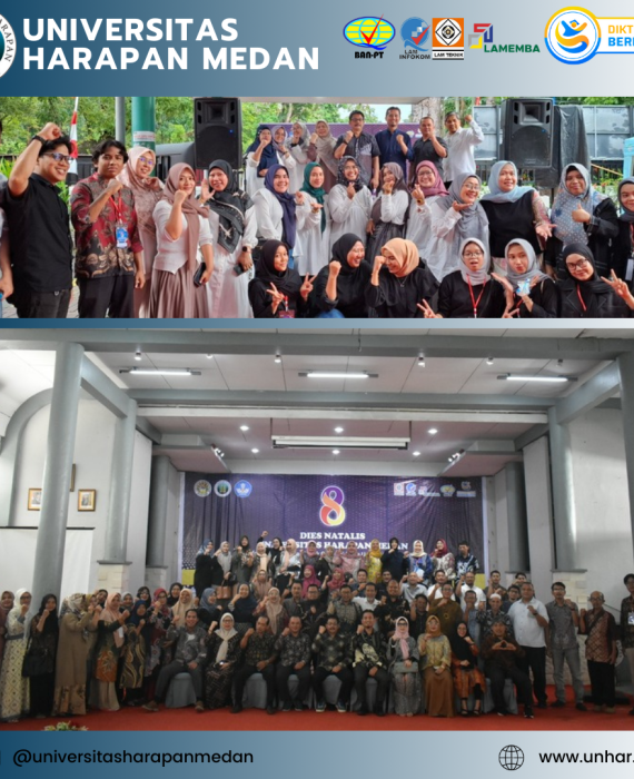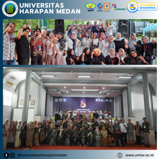 Universitas Harapan (UnHar) Medan merayakan Dies Natalis ke-8 yang jatuh pada tanggal 24 Agustus 2025 dengan penuh semangat dan antusiasme.