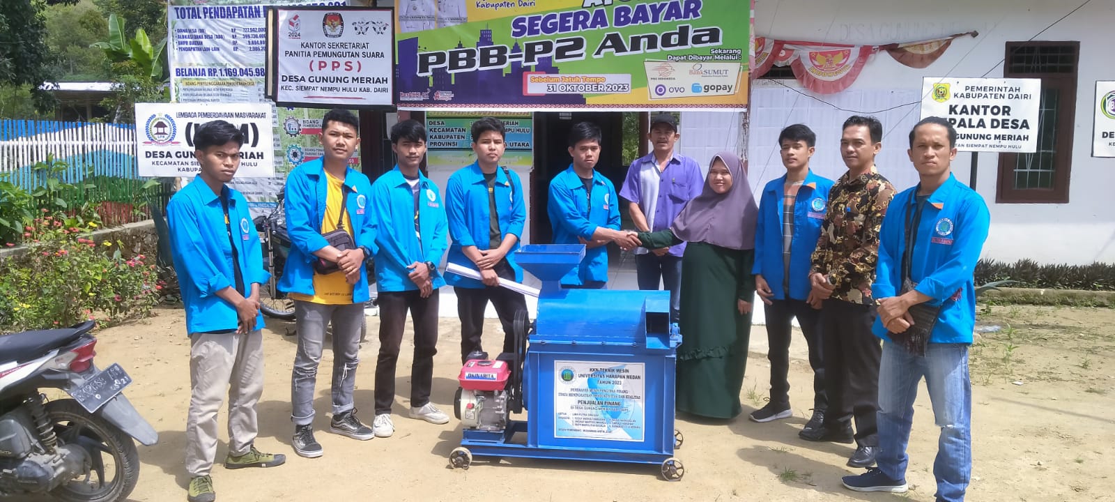 Masyarakat Desa Gunung Meriah Kecamatan Siempat Nempu Hulu Kabupaten Dairi sangat senang atas program KKN yang dilaksanakan Mahasiswa Prodi Teknik Mesin FTK UnHar Medan tersebut. Selama proses KKN mahasiswa sangat membantu masyarakat setempat  dengan dibuatkannya mesin pengupas pinang. Sebagaimana diketahui pinang merupakan salah satu hasil pertanian yang ada di Desa Gunung Meriah.