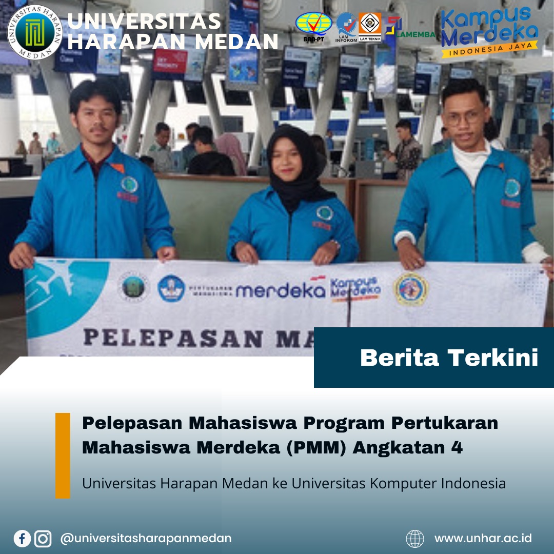 Pelepasan mahasiswa/i Universitas Harapan Medan yang mengikuti kegiatan kampus merdeka diantaranya program Kampus Mengajar Angkatan 7, Pertukaran Mahasiswa Merdeka Angkatan 4 dan Magang Studi Independen Bersertifikat (MSIB) Angkatan 6.