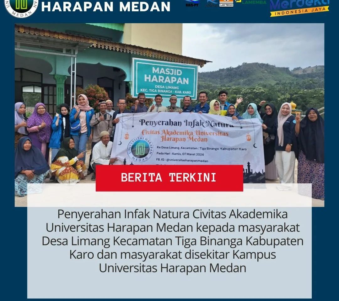 Penyerahan Infak Natura Civitas Akademika Universitas Harapan Medan kepada Masyarakat Desa Limang Kecamatan Tiga Binanga Kabupaten Karo dan Masyarakat disekitar Kampus Universitas Harapan Medan. Terimakasih kepada seluruh donatur semoga Allah SWT berkahi rezekinya dan selalu diberikan kesehatan. Jazakallahu khairan.