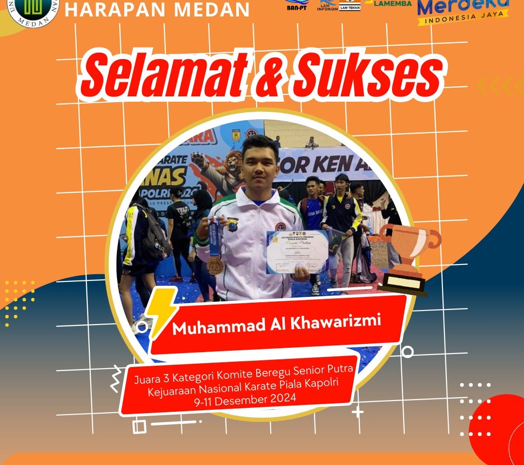 Rektor Universitas Harapan (UnHar) Medan, Prof. Drs. Sriadhi, S.T., M.Pd., M.Kom., Ph.D, memberikan ucapan selamat dan sukses kepada Muhammad Al Khawarizmi, mahasiswa Program Studi Teknik Informatika Fakultas Teknik dan Komputer UnHar Medan, atas prestasinya meraih juara 3 dalam kategori komite beregu senior putra pada Kejuaraan Nasional Karate Piala Kapolri yang dialaksanakan pada tanggal 9-11 Desember 2024. Prestasi ini menunjukkan dedikasi dan semangat juang yang tinggi dari Muhammad Al Khawarizmi dalam mengharumkan nama UnHar Medan di tingkat nasional.