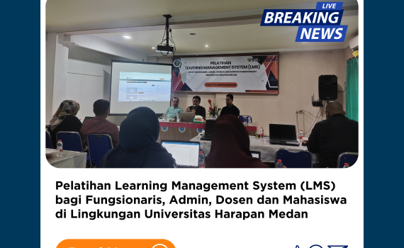 Universitas Harapan (UnHar) Medan menyelenggarakan Pelatihan Learning Management System (LMS) bagi Fungsionaris, Admin, Dosen dan Mahasiswa dilingkungan UnHar Medan pada