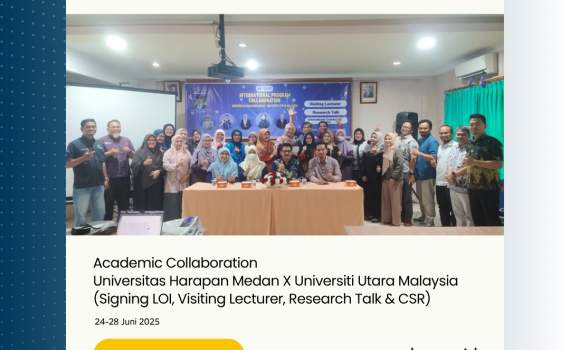 Medan, 25 Juni 2025 — Universitas Harapan Medan (UnHar Medan) menjalin kolaborasi akademik dengan Universiti Utara Malaysia (UUM) dalam sebuah