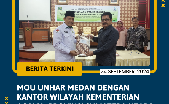 Universitas Harapan (UnHar) Medan telah menandatangani Nota Kesepahaman (MoU) dengan Kantor Wilayah Kementerian Agama (Kemenag) Provinsi Sumatera Utara pada tanggal