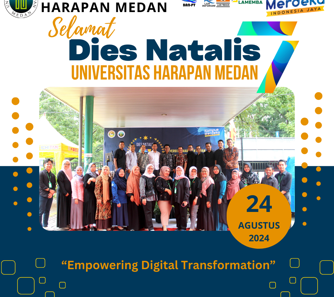 Perayaan Dies Natalis ke-7 Universitas Harapan tidak hanya menjadi peringatan perjalanan tujuh tahun yang telah dilalui, tetapi juga menjadi awal dari babak baru yang penuh optimisme dan inovasi. Dengan semangat “Empowering Digital Transformation“, UnHar Medan siap melangkah maju menghadapi tantangan dan peluang di era digital, sambil terus berkomitmen untuk menghasilkan lulusan berkualitas yang siap berkontribusi pada kemajuan bangsa.