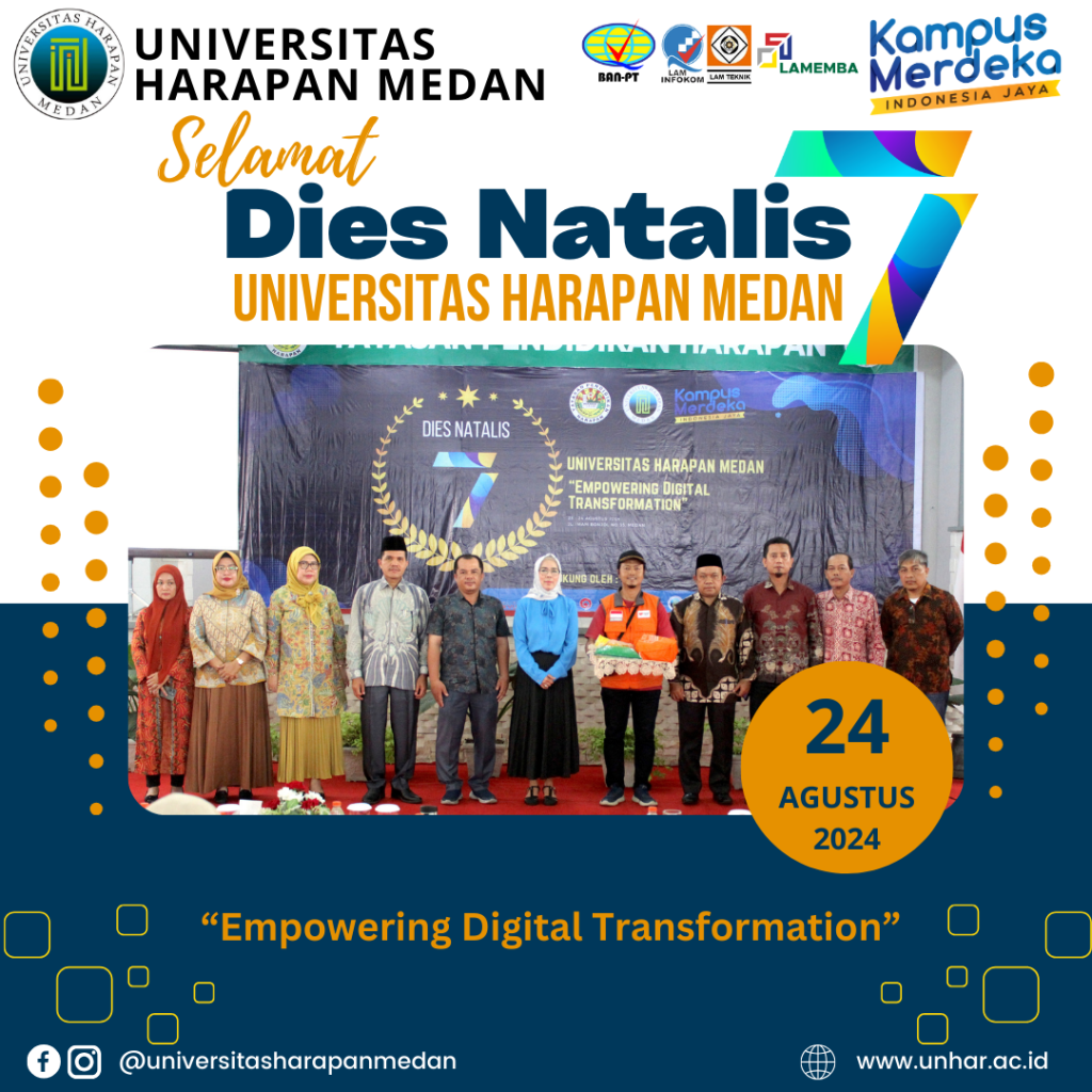 Perayaan Dies Natalis ke-7 ini bukan hanya menjadi momen untuk merayakan pencapaian masa lalu, tetapi juga momentum bagi UnHar Medan untuk merefleksikan perjalanannya dan mempersiapkan langkah strategis ke depan. Dengan fokus pada penguatan kurikulum berbasis teknologi, UnHar Medan berkomitmen untuk menghasilkan lulusan yang tidak hanya menguasai ilmu teoretis, tetapi juga memiliki keterampilan praktis yang relevan dengan kebutuhan industri di era digital.